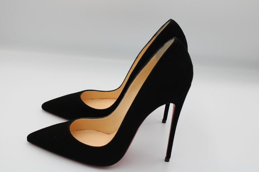 Louboutin - Escarpins en cuir noir avec semelle contrastante